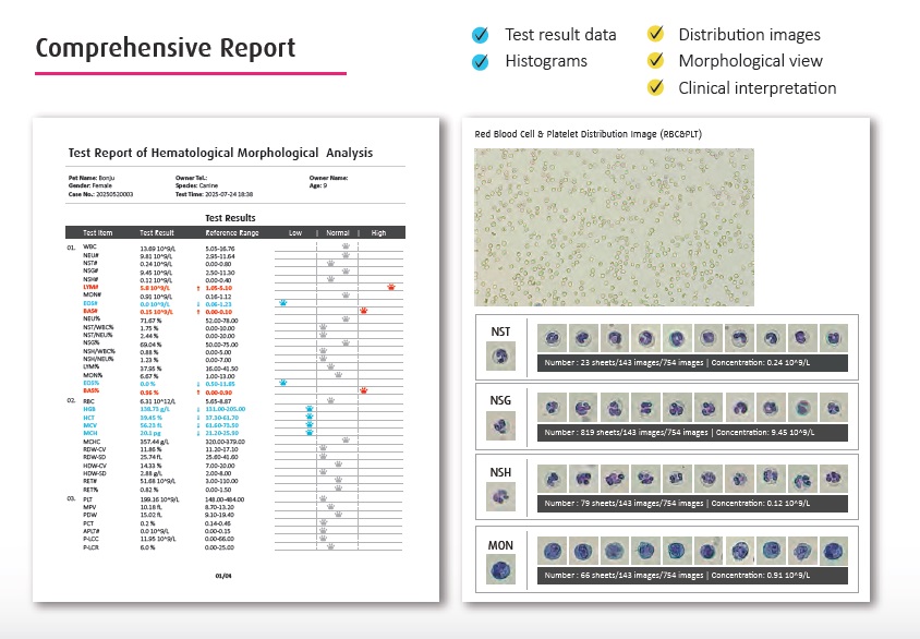 One platform, multi-matrix: CBC morphology + urine + fecal in a consolidated workflow that's easy to position and bundle.