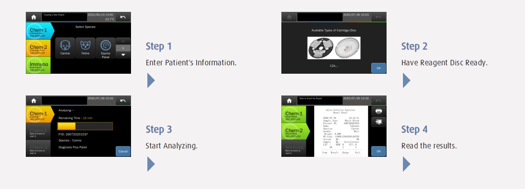 All steps are designed automatically from checking the validity of cartridge to printing the results.
