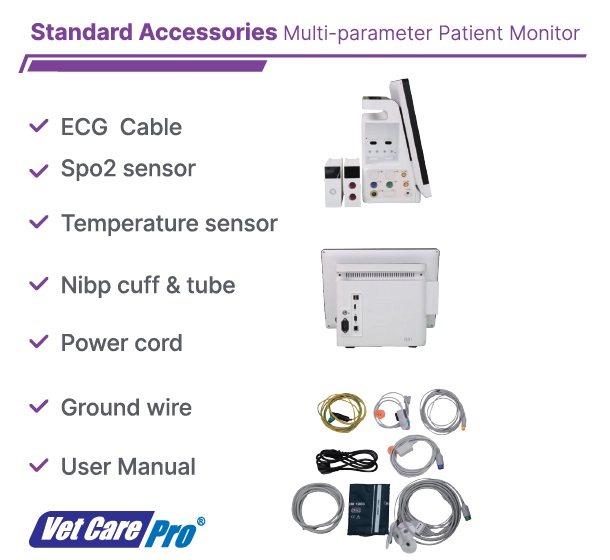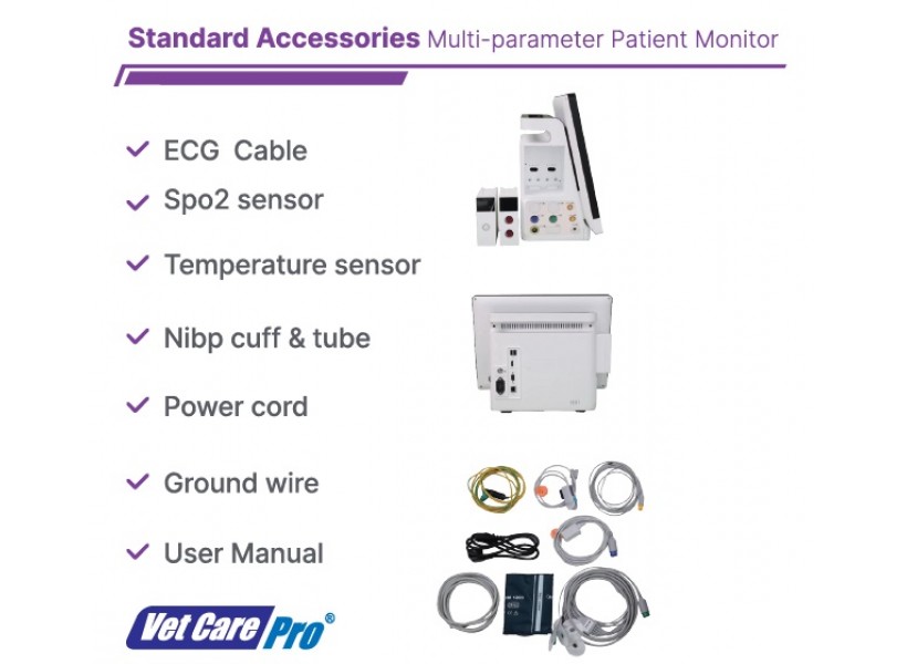 VetCare Pro 12 Inch Multi-parameter VET Monitor (Basic Model) for SPO2, NIBP, TEMP, ECG, RESP, HR/PR)