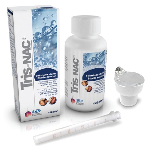 Innovative and synergistic combination of Tris-EDTA + NAC (N-Acetyl Cysteine) for topical usage (skin/ear), in dog and cat, an effective support to prevent build-up of biofilm and to disrupt the already mature ones!