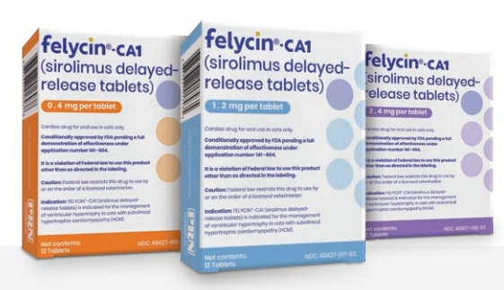 Indicated for the management of ventricular hypertrophy in cats with subclinical hypertrophic cardiomyopathy (HCM). Conditionally approved by FDA pending a full demonstration of effectiveness under application 141-604.