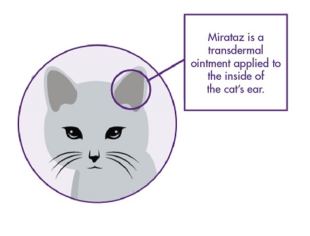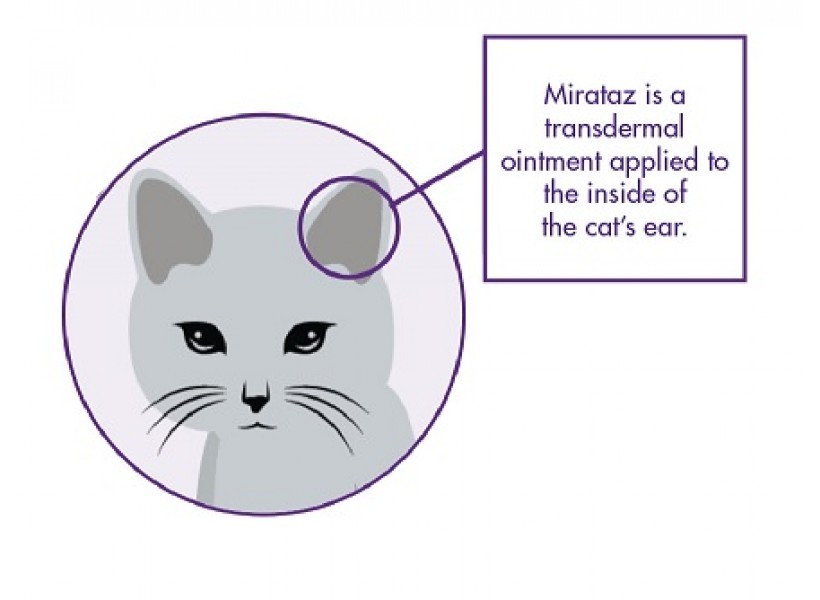 Mirataz is indicated for the management of weight loss in cats and is for topical applications in cats only under veterinary supervision. Not for oral or ophthalmic use.
