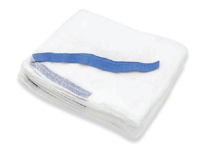 Sterile lap sponge, 45x45cm,8-ply, pre-washed, with X-ray detectable chip and blue loop. 2 pieces per pack