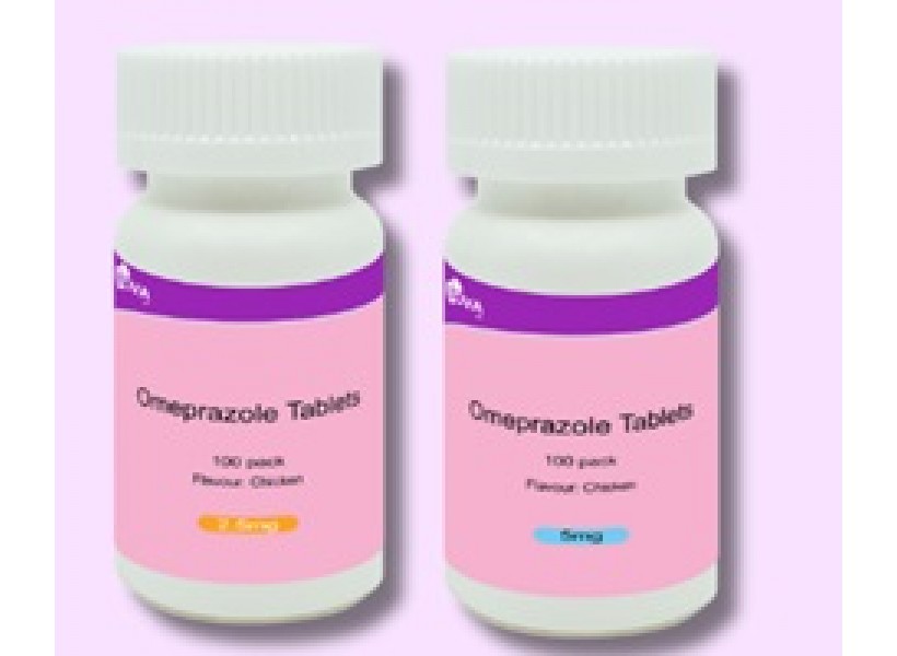 Omeprazole tablets (Chicken flavor) 2.5mg/ 5mg, 100 tabs, BOVA